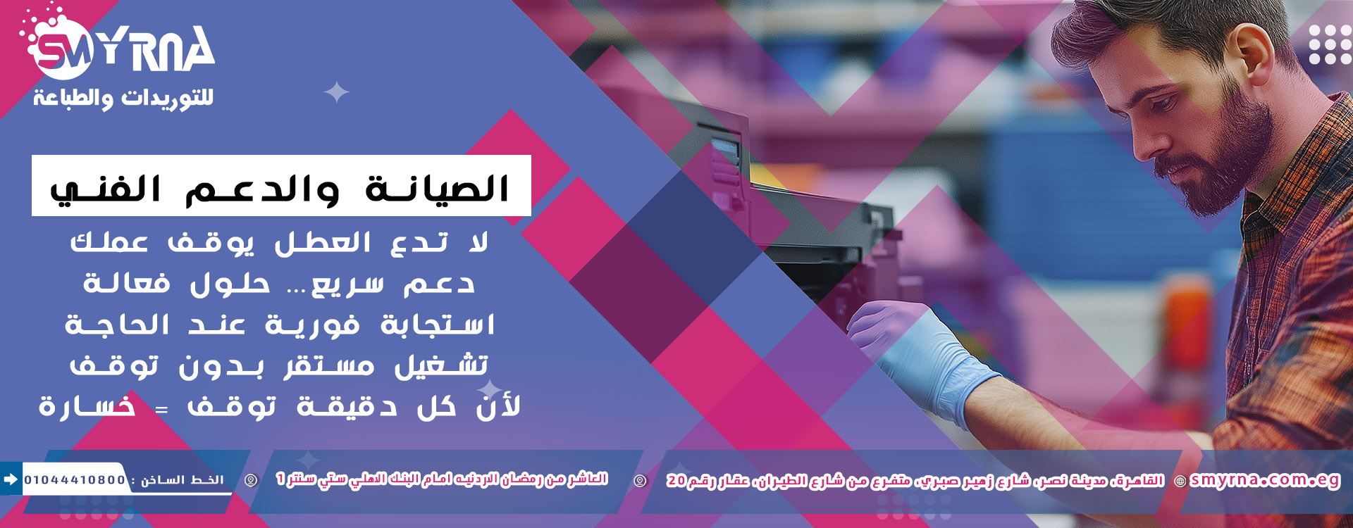 في سميرنا نقدم منظومة متكاملة من أنظمة الطباعة الاحترافية، الأحبار الأصلية، قطع الغيار المعتمدة، الدعم الفني المتخصص، وبرامج التدريب المؤسسية — لضمان تشغيل مستقر وعائد استثماري واضح.